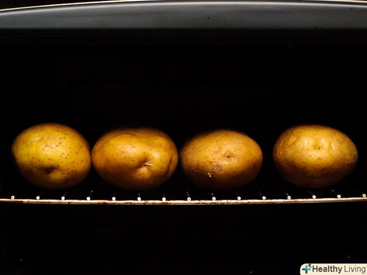 Випікайте 4 великі картоплини в духовці.після того як ви помиєте картоплю, використовуйте паперовий рушник, щоб покрити їх знежиреним спреєм і помістіть їх на деко. Буде потрібно 45-60 хвилин, щоб спекти картоплю . Ви можете перевірити готовність, протикаючи картоплю виделкою .