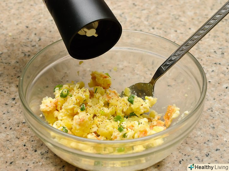 Приправте суміш сіллю і перцем.додайте сіль, і перець до суміші за смаком.