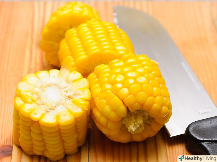 Розріжте кожен качан на чотири частини.зніміть все листя з кукурудзи і позбудьтеся від рилець. Ножем розріжте кожен качан на чотири рівні частини.- Можна розламати качани руками, якщо Кукурудза досить тонка. Але так буде складно отримати однакові за розміром шматочки.