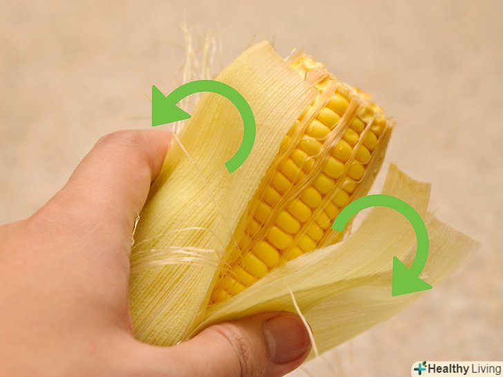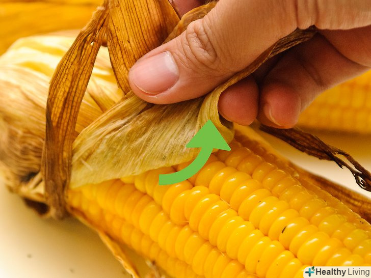 Промийте кукурудзу.спочатку підставте качан під струмінь прохолодної води і обполосніть листя. Скребіть його пальцями, щоб видалити весь бруд.- " Не " знімайте листя з кукурудзи.