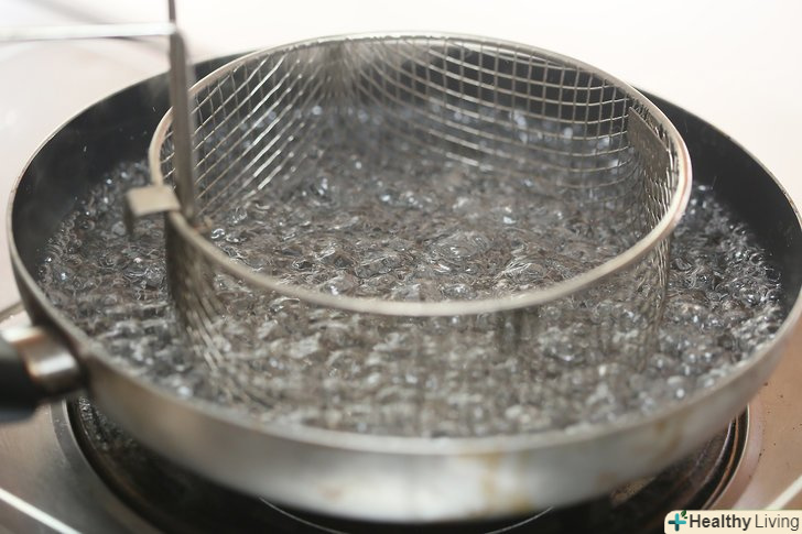 Зніміть кришку, коли закипить вода.поставте в каструлю парову корзину.