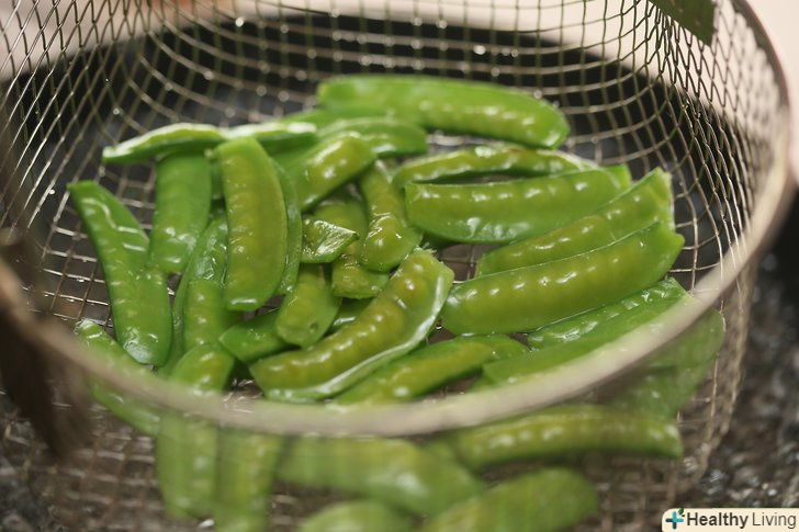 Пробланшируйте горох, щоб зберегти його.якщо не можете використовувати горох протягом 2 днів, доведіть воду в каструлі до кипіння. Киньте горох на 1 хвилину, потім вийміть його і помістіть в крижану баню.- Зцідіть горох і зберігайте в холодильнику протягом 5-7 днів.
