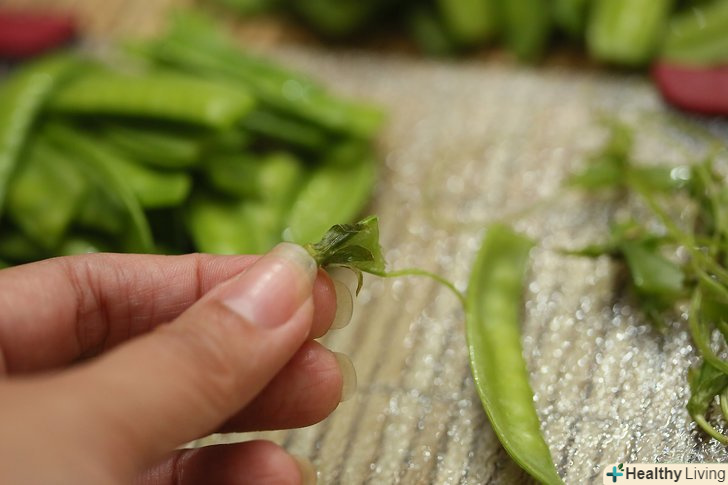 Відламайте один кінець стручка.потягніть за волокнисту ниточку, яка з'єднує кінці із зовнішнього боку стручка. Потім відламати інший кінець.- Ви побачите, чи має стручок таку волокнисту ниточку між кінцями, чи ні.