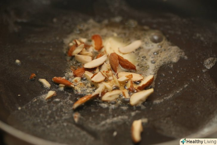 Додайте ¼ склянки (25 г. ) нарізаного мигдалю.підсмажте його в сковороді.