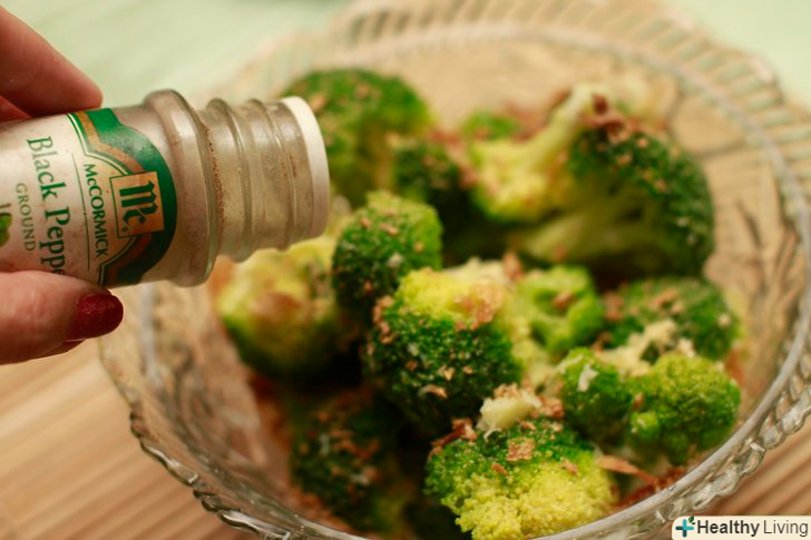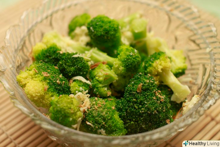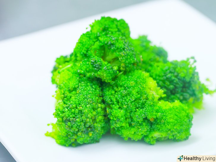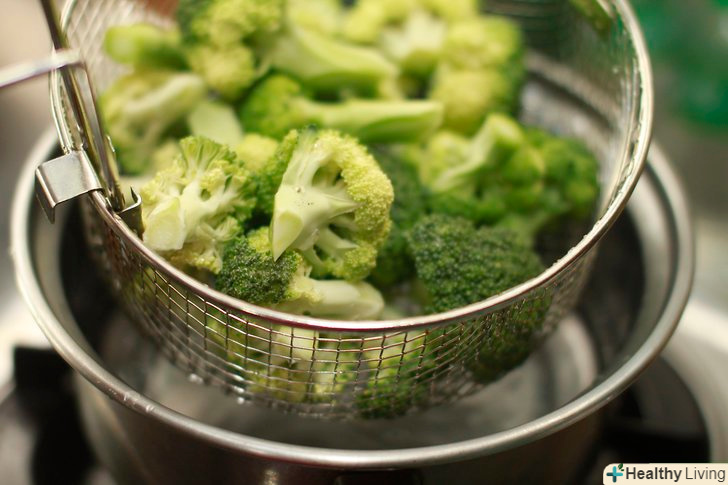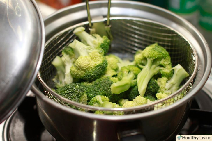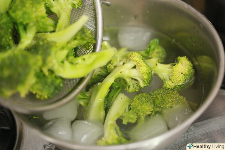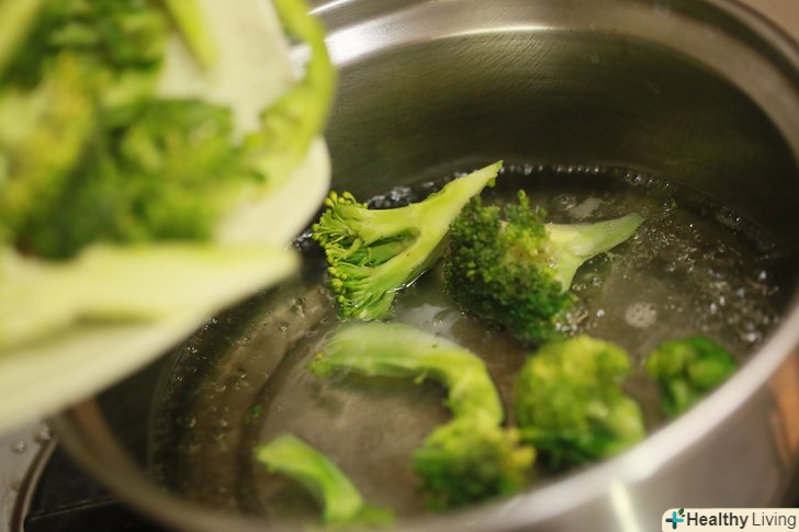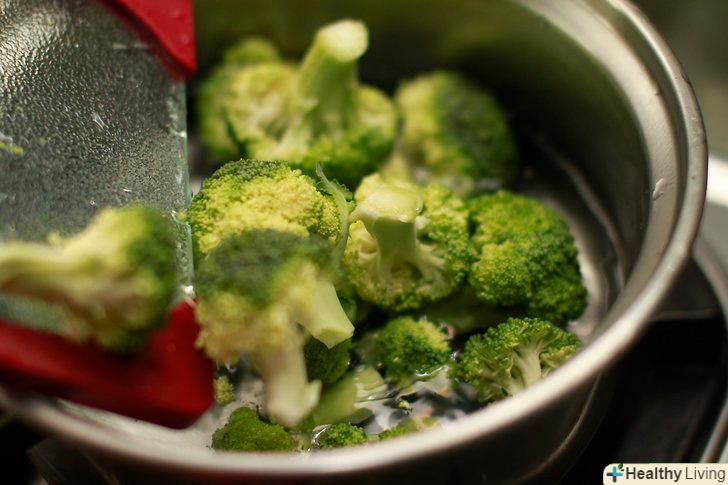 Відваріть брокколі.налийте в каструлю води на 2-8 сантиметрів і покладіть в неї брокколі. Дайте воді закипіти на середньому вогні. Відразу ж зніміть каструлю з плити.- Якщо ви вирішили приготувати брокколі в мікрохвильовій печі, то готуйте не більше 1-3 хвилин. Час залежить від обраної потужності і кількості брокколі. Брокколі необхідно готувати до напівготовності, так званий стан «аль денте». Якщо після 1-3 хвилин приготування брокколі все ще має мерзлі шматочки, готуйте її ще 30 секунд. Перед тим, як ставити брокколі в мікрохвильову піч, викладіть її в каструлю з кришкою, куди додайте 2-3 сантиметри води.
