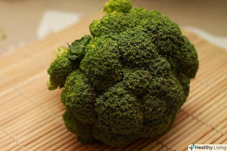 Очистіть брокколі. Промийте брокколі під струменем води. Якщо брокколі сильно забруднене, опустіть її в підсолену воду хвилин на 10, а потім ретельно промийте під проточною водою.- Брокколі, вирощена в городі, схильна до такого шкідника, як совка Капустяна. Цей паразит являє собою зелену личинку, довжиною в 2,5 сантиметра. Самі ці личинки нешкідливі, проте їх присутність здатна вбити будь-який апетит. Ці паразити вмирають в солоній воді. Після замочування брокколі в солоній воді, мертві личинки спливуть, і їх з легкістю можна буде видалити.