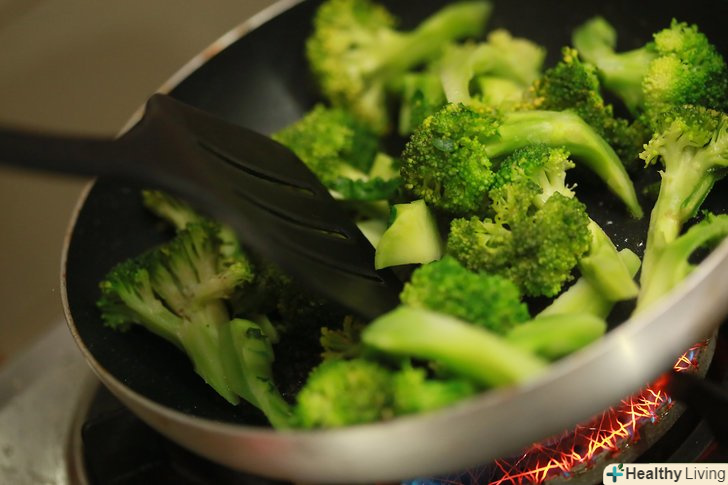 Смажте брокколі, помішуючи, поки вони не стануть зеленими і м'якими.