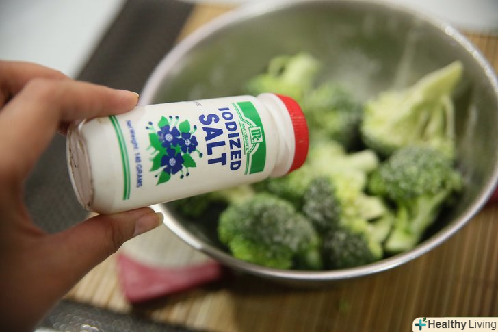 Збризніть брокколі 3 ч. л. оливкової олії і посипте сіллю (половина чайної ложки).