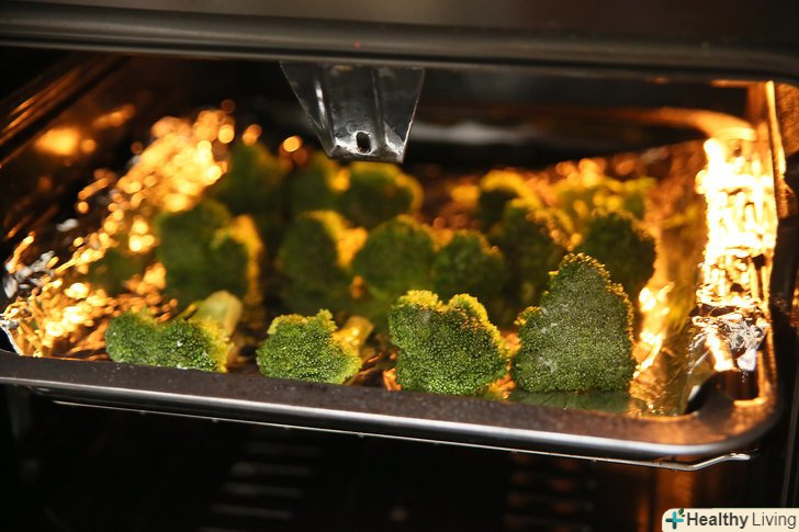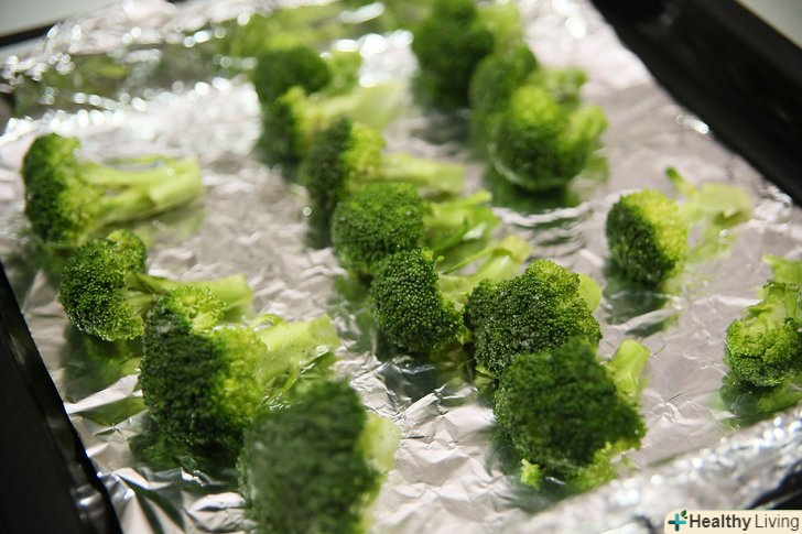 Покладіть брокколі на деко, застелене фольгою.викладіть її в один шар.