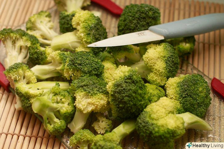 Приготуйте суцвіття. Відріжте суцвіття ножицями від стебел. Якщо ви не дуже любите стебла, робіть надріз відразу ж під суцвіттям. Якщо ви хочете приготувати більш корисний варіант брокколі, відрізайте суцвіття зі стеблами.