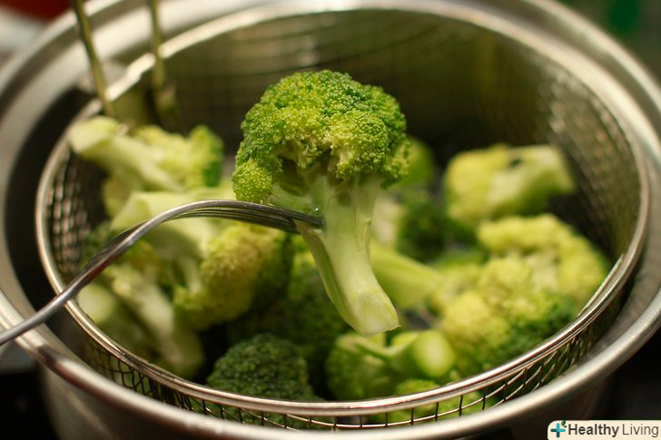 Приготуйте брокколі на пару.готуйте із закритою кришкою 3-5 хвилин, в залежності від обсягу покладеного овоча.