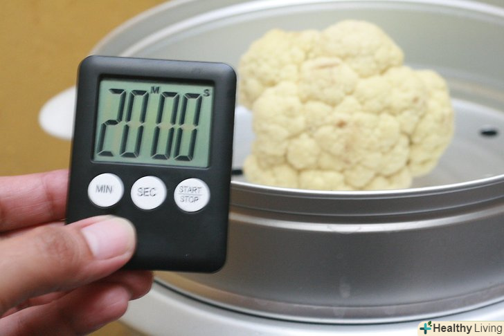 Готуйте кольорову капусту протягом 4-6 хвилин, перевіривши готовність через 4 хвилини.якщо ніж легко проникає в стебло, капуста повністю готова. Необхідно, щоб капуста була ніжною, але злегка хрусткою всередині.- Якщо ви хочете приготувати на пару цілий качан капусти, вам буде потрібно 17-20 хвилин.