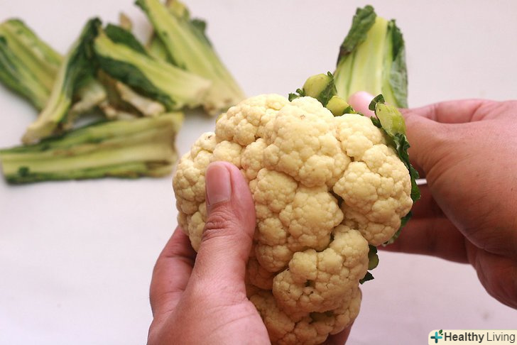 Видаліть зовнішні листя цвітної капусти.якщо ви хочете використовувати листя для приготування овочевого бульйону, то залиште їх і ті частини капусти, які ви зазвичай викидаєте.