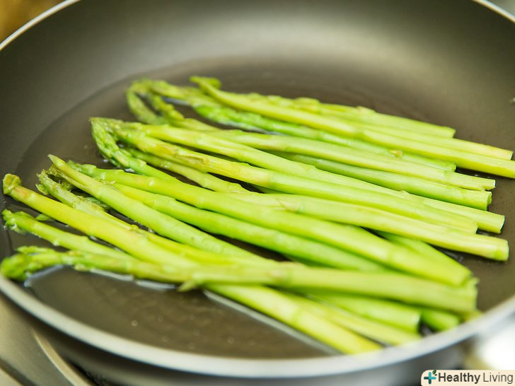 Як варіант, можна приготувати спаржу на сковороді.для приготування 225 грам спаржі налийте на сковороду ½ склянки (120 мілілітрів) води.[2] додайте спаржу і накрийте кришкою. Тушкуйте спаржу на середньому вогні протягом 5 хвилин або до тих пір, поки вона не стане яскраво-зеленою і м'якою. Злийте воду і подавайте спаржу.