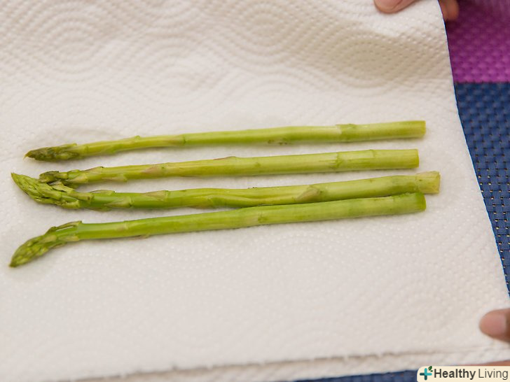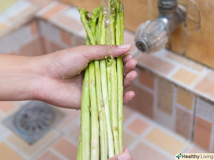 Вимийте спаржу.опустіть спаржу під холодну проточну воду і очистіть її від бруду за допомогою пальців. Зосередьтеся на кінчиках, де накопичується найбільше бруду.