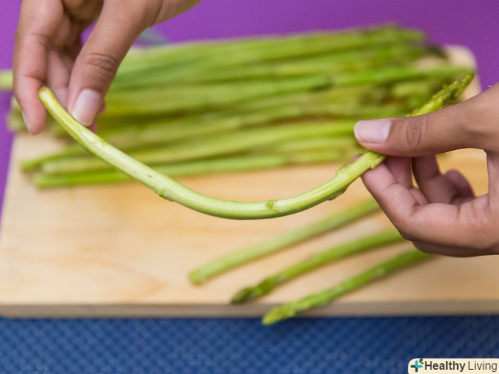 Зігніть спаржу, щоб позбутися стовбура.тримайте спаржу з двох кінців і зігніть її. Вона зламається в тому місці, де починається стовбурова частина. Викиньте тверду частину.[14]