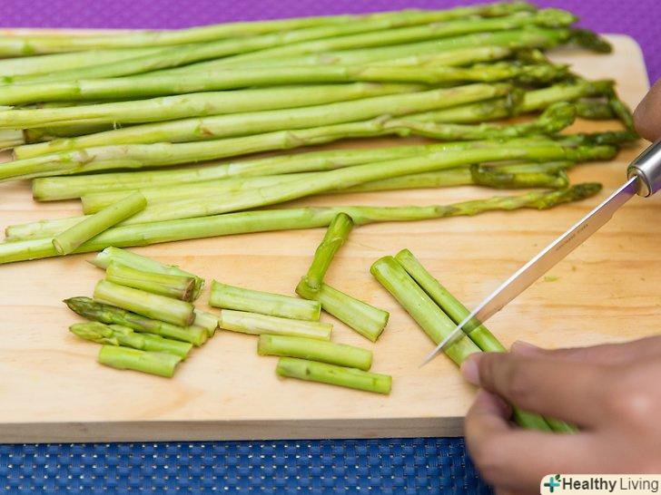 - Можете нарізати спаржу на більш дрібні шматочки.