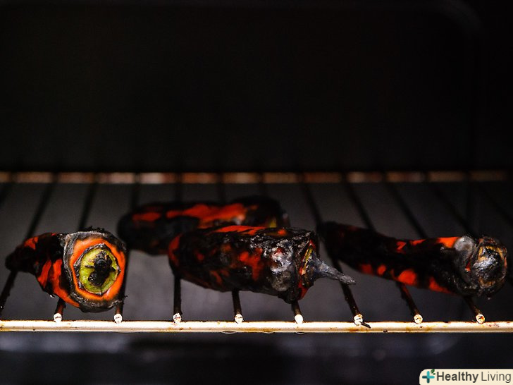 Смажте їх протягом 15-20 хвилин.кожні кілька хвилин ви повинні їх перевертати щипцями на чверть, так само, як Ви б робили, якби смажили їх на газовому грилі. Перці повинні бути обвугленими і м'якими, і легко стискатися. Це дасть вам зрозуміти, що перець готовий. Якщо він все ще жорсткий, смажте його протягом декількох додаткових хвилин, і продовжуйте перевіряти час від часу.