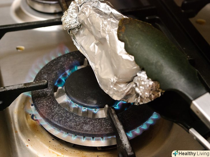 Розкрийте фольгу.Будьте обережні, тому що вона все ще може бути гарячою. Обережно використовуйте щипці, щоб вийняти перець з фольги. Він буде м'яким, обвугленим, і майже готовим до вживання.