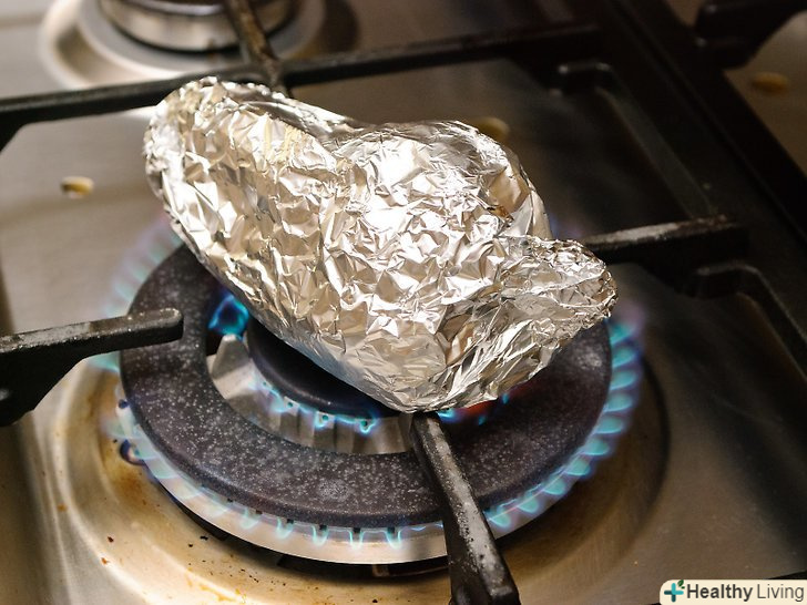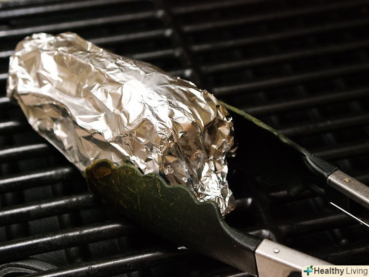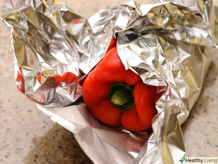 Оберніть перці у фольгу.оберніть перці в два шари або одним шаром важкої виробничої фольги, переконайтеся, що перці повністю покриті. Якщо ви не обернете їх, ви все одно зможете смажити їх на грилі, але вони можуть вийти трохи неакуратними. Ви можете, звичайно, просто смажити їх не упаковуючи, якщо не заперечуєте проти безладу.