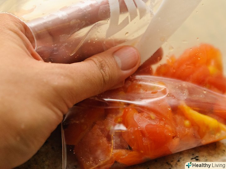 Вийміть почорнілі червоні перці з духовки.використовуючи щипці, покладіть їх в закривається пакет. Або ви можете покласти червоний перець в миску, а потім накрити миску поліетиленовою плівкою. Поставте пакет або миску в сторону і не чіпайте перці протягом 20 хвилин. У будь-якому випадку, вам потрібно їх трохи розпарити, перш ніж з'їсти, щоб вони досить розм'якшилися, щоб зняти з них шкірку.