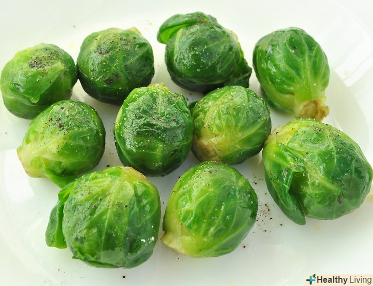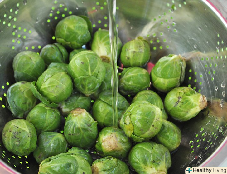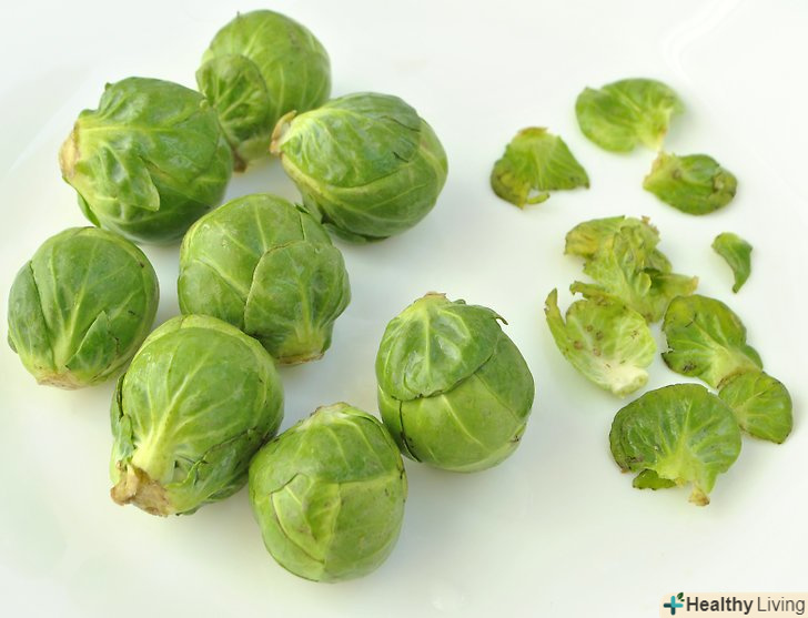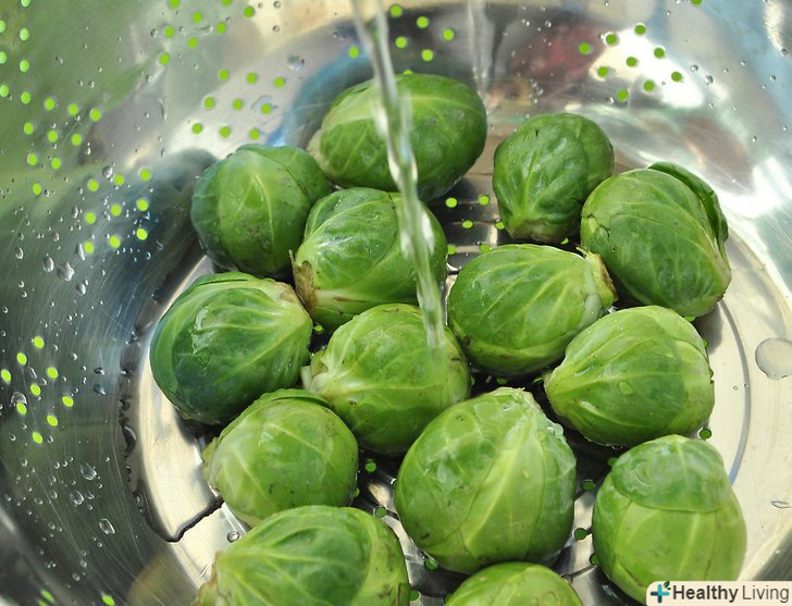 Вимийте брюссельську капусту.промийте брюссельську капусту під проточною водою і видаліть жовте листя.