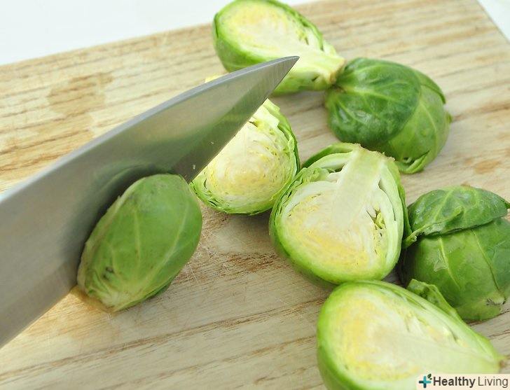 Вимийте і наріжте брюссельську капусту.промийте брюссельську капусту під проточною водою і видаліть жовте листя. Потім розріжте її навпіл, починаючи від стебла, і зробіть в стеблі надріз глибиною близько 1,5 см.це допоможе спеку проникнути в брюссельську капусту.[2]