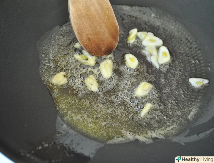 Покладіть в сковороду вершкове масло, сіль і часник і нагрійте.покладіть в сковороду 2 столові ложки (30 г) вершкового масла, 1 чайну ложку солі і 1 рубаний зубчик часнику. Зачекайте 1-2 хвилини, щоб інгредієнти нагрілися, а часник став ароматним.
