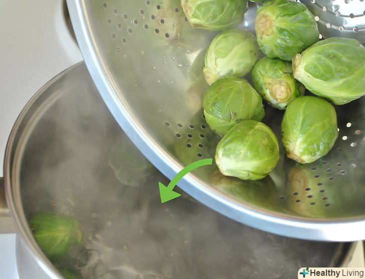 Відваріть брюссельську капусту протягом 5-10 хвилин. Вона повинна почати розм'якшуватися. Потім злийте воду.