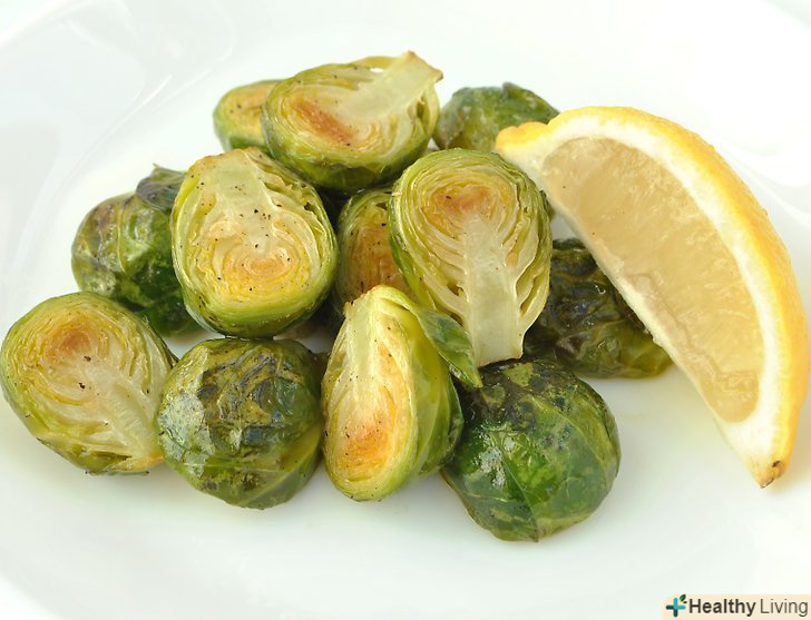 Налийте в сковороду 1/3 склянки води і закінчите готування капусти.вода повинна покривати все дно сковороди. Смажте брюссельську капусту, поки рідина не випарується, а капуста не приготується. Потім додайте 2 столові ложки (30 мл) лимонного соку і подавайте в гарячому вигляді.