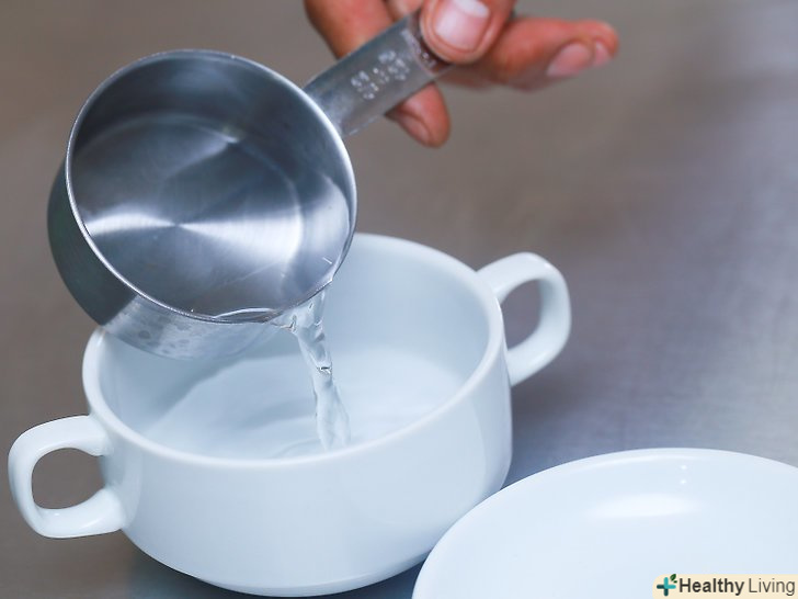 Наповніть кухоль, що підходить для використання в мікрохвильовій печі, водою об'ємом ½ склянки (120 мл).Візьміть мірний стакан , відміряйте ½ склянки (120 мл) води. Налийте воду в кухоль.