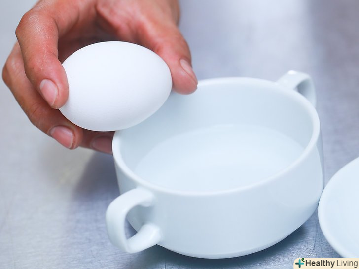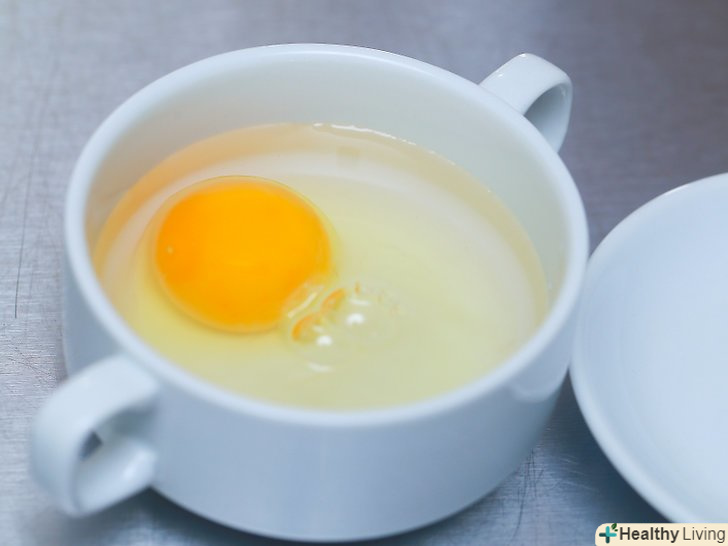 Розбийте яйце в кухоль .стукніть один або два рази яйце об край гуртки, щоб розбити шкаралупу. При цьому будьте обережні - не пошкодити жовток. Розкрийте половинки шкаралупи, обережно випустивши яйце в кухоль з водою.