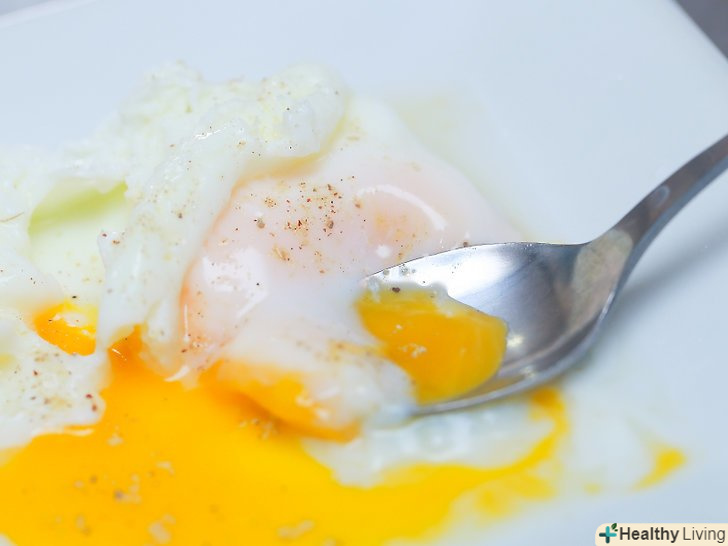 Перед тим як подавати яйце, переконайтеся, що воно готове.відкрийте дверцята мікрохвильової печі і підніміть кришку. Білок повинен стати твердим, а жовток — рідким.[4] якщо білок буде рідким навіть через хвилину, закрийте дверцята мікрохвильової печі і готуйте його ще 15 секунд. Знову перевірте яйце-білок повинен стати твердим.
