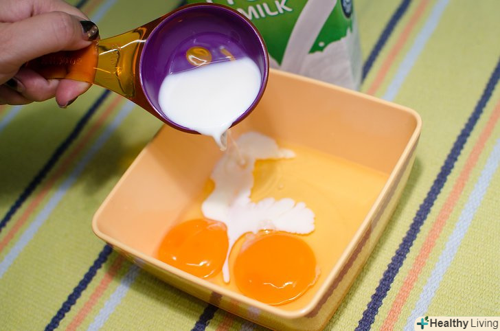 Перемішайте, поки яйце не буде повністю змішано з молоком. переконайтеся, що немає ніяких грудок в суміші.