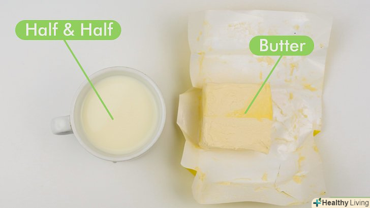 Спробуйте суміш молока і вершків з вершковим маслом.кожна склянка (240 мл) жирних вершків в рецепті можна замінити вершковим маслом і сумішшю молока і вершків. Розтопіть 1/6 склянки (40 мл) масла і почекайте, поки воно охолоне. Не дайте йому затвердіти. Налийте в миску 7/8 склянки (210 мл) суміші молока і вершків, після чого додайте остигле топлене масло і розмішайте до повної однорідності.[8]