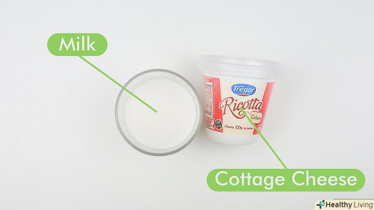 Спробуйте зернений сир з молоком.змішайте зернений сир і нежирне сухе молоко в співвідношенні 1:1, щоб отримати низькокалорійну заміну жирним вершкам. Перемішайте інгредієнти, поки в суміші не зникнуть грудочки.[5]- Якщо у вас немає сухого молока, використовуйте знежирене.