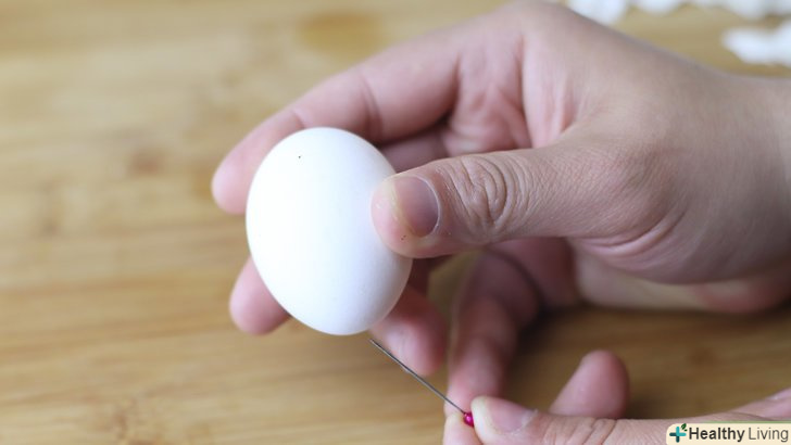 Щоб яйце легше чистилося, перед варінням проткніть його шкаралупу шпилькою.перш ніж варити яйця, проткніть в кожному з них крихітний отвір, щоб вони ввібрали більше води — в цьому випадку їх буде легше очистити від шкаралупи. Отвір можна виконати шпилькою або тонкої швейної голкою. Візьміть в одну руку яйце, піднесіть до шкаралупи шпильку і злегка натисніть на неї, щоб вона проткнула шкаралупу. Проткніть кожне яйце, після чого обережно покладіть їх в киплячу воду.[11]- Додаткова вода в яйці полегшить відділення білка від плівки шкаралупи.