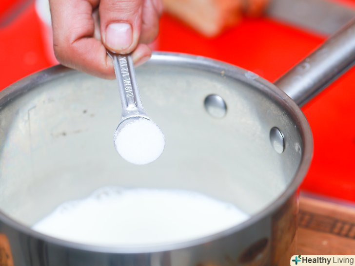 Розігрійте рідку суміш.поставте каструлю на середній вогонь і доведіть розчин до слабкого (але не сильного) кипіння. При цьому на поверхні рідини почнуть утворюватися дрібні бульбашки.