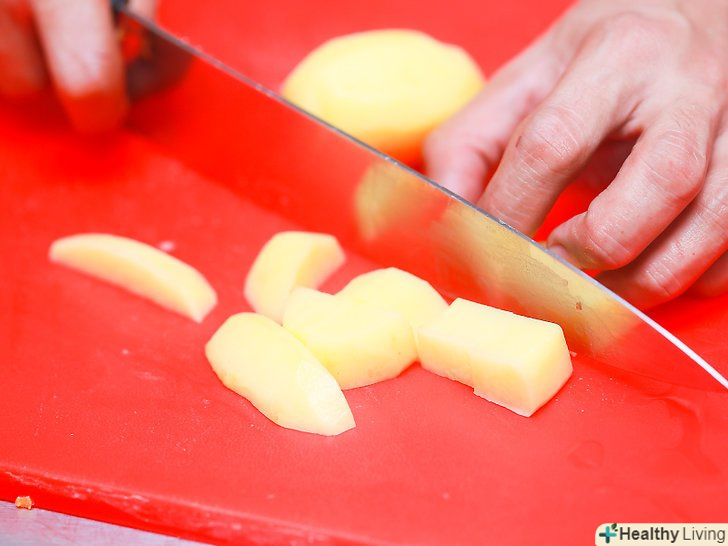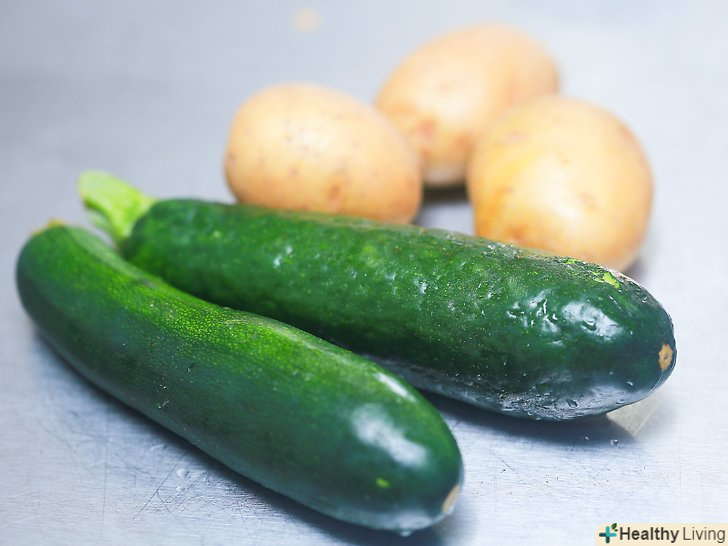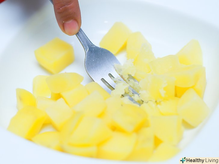 Запечіть або приготуйте на пару 5 невеликих картоплин.почистіть картоплини і розріжте їх на 4 частини. Розкладіть скибочки картоплі на другому деку і помістіть його в духовку разом з кабачками приблизно на 10 хвилин або до тих пір, поки картопля не стане м'яким.[18]- Можна також швидко приготувати картоплю в мікрохвильовій печі. Накрийте його і готуйте близько 5 хвилин або до тих пір, поки він не стане дуже м'яким на дотик.