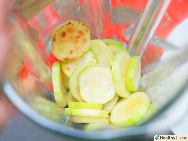 Покладіть в блендер готові кабачки.потім додайте в блендер ¼ склянки (15 грамів) харчових дріжджів, ½ чайної ложки (1,7 грама) часникового порошку, ½ чайної ложки (1,2 грама) цибулевого порошку, ½ чайної ложки (3,5 грама) дрібнозернистої морської солі, ¾ чайної ложки (1,7 грама) копченої або звичайної паприки, 2 чайні ложки (10 мілілітрів) соєвого або тамариндового соусу з низьким вмістом натрію і 1 столову ложку (15 мілілітрів) свіжого лимонного соку.[20]- Долийте ¾ склянки (180 мілілітрів) води і при необхідності додайте ще, аж до 1 склянки (240 мілілітрів).