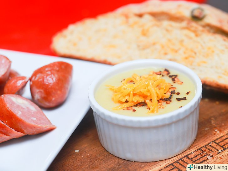 Підготуйте все необхідне.у веганів або людей з непереносимістю лактози теж іноді може виникнути бажання спробувати сирний соус. У цьому випадку може стати в нагоді веганський сирний соус, хоча насправді ніщо не замінить смаку справжнього сиру. Щоб приготувати хороший веганський сирний соус, необхідно використовувати такі крохмалисті овочі, як кабачки і картопля — вони додадуть соусу кремову текстуру і допоможуть запобігти розшарування.[15]- Вам знадобиться досить потужний блендер або кухонний комбайн, щоб як слід перемішати соус і надати йому однорідну кремову текстуру.