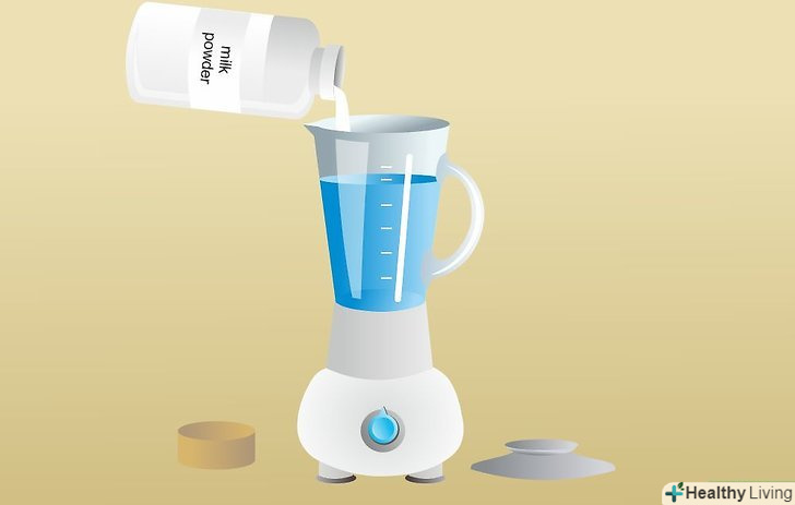 Візьміть одну склянку сухого молока і повільно додайте його в блендер. Змішайте, як слід. Повторіть це для інших трьох склянок, так щоб все було перемішано після кожного додавання склянки.
