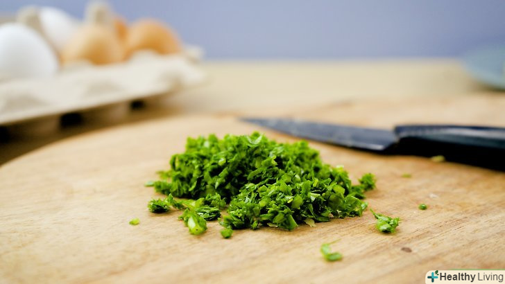 Додайте в жовтки трави для додаткового смаку.щоб надати омлету свіжий аромат, підмішайте в жовтки 2 столові ложки (7,5 грама) свіжих подрібнених трав, перш ніж додавати їх в білки. Спробуйте використовувати базилік, петрушку, шніт-цибулю, майоран або їх комбінацію.[11]- Замість свіжої зелені можна додати в омлет 1 столову ложку сухих трав.