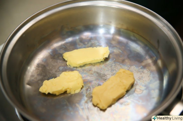 Наріжте скибочками масло.наріжте масло на скибочки розміром зі столову ложку. Використовуйте зазначені розміри на упаковці масла або просто приблизно наріжте. Найголовніше в тому, щоб шматочки вершкового масла були все приблизно однакового розміру. Це потрібно для того, щоб вони танули рівномірно.- Несолоне вершкове масло найкраще підходить для виготовлення коричневого вершкового масла і воно потрібно в більшості рецептів.