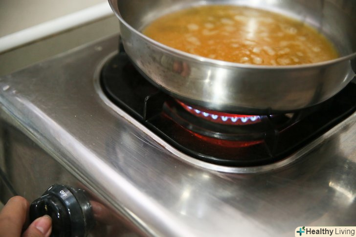 Поставте каструлю на середній вогонь.поставте каструлю на середній вогонь і помішуйте віночком. Як тільки ви почали заважати - не зупиняйтеся!- Можна приготувати коричневе масло швидше на сильному вогні, але це значно збільшує шанси на його спалювання. Для зменшення ризику, використовуйте середній (або низький) вогонь.