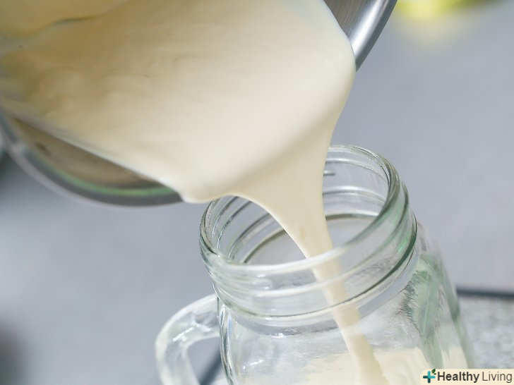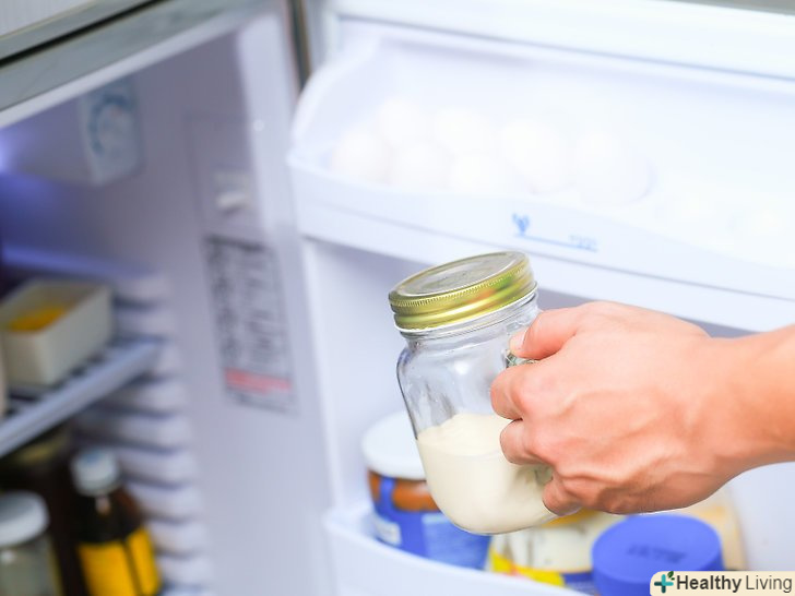 Приготуйте банку і вентильовану кришку. Сметану необхідно зберігати в чистій скляній банці. У період сквашування сметані потрібна вентиляція, але в той же час її треба захищати від мошок і інших сторонніх предметів. Медична марля, туго намотана навколо горлечка банки і закріплена гумкою, відмінно впорається з цим завданням. Для зберігання готової сметани візьміть звичайну герметичну кришку.- Переконайтеся, що банку стерильно чиста. Якщо ви використовували банку для інших цілей, простерилизуйте її, прокип'ятивши 5 хвилин і повністю висушивши перед тим, як покласти в неї сметану.