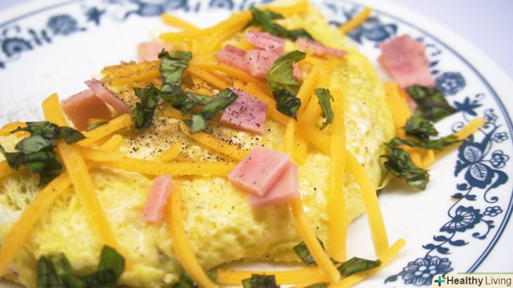 Приправте яєчню свіжими травами. поріжте кілька гілочок свіжих трав і додайте їх в яєчню. Можна використовувати як одну, так і кілька трав, наприклад кріп, материнку, базилік, петрушку або шніт-цибулю. [14]- Щоб швидше надати яєчні присмак трав, додайте свіжий соус песто за смаком. Врахуйте, що соус змінить колір яєчні.