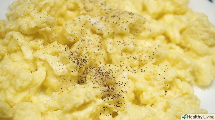 - Якщо ви хочете приготувати ніжну яєчню, зніміть сковороду з вогню і помішуйте яйця приблизно 30 секунд. По черзі ставте сковороду на вогонь і знімайте її з плити і перемішуйте яйця, поки у вас не вийдуть м'які пластівці.