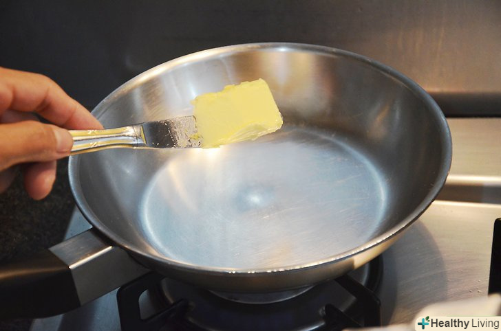 Включіть середній вогонь і покладіть в сковороду трохи вершкового масла.