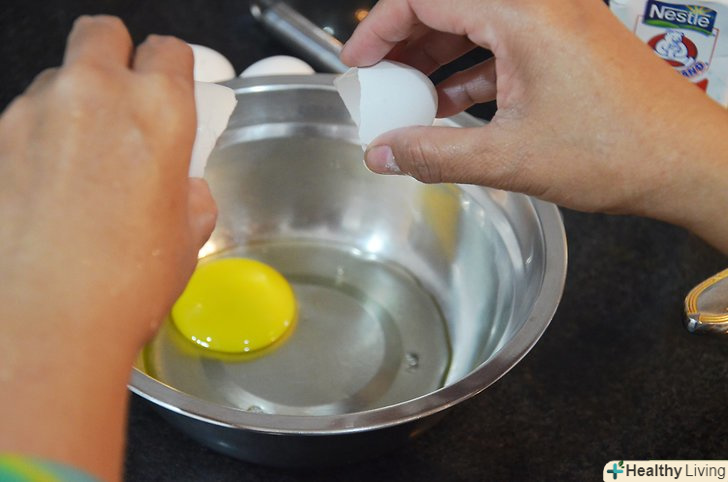 Розбийте в миску 3 яйця. збийте їх, а потім додайте молоко. Збивайте, поки маса не стане біла.